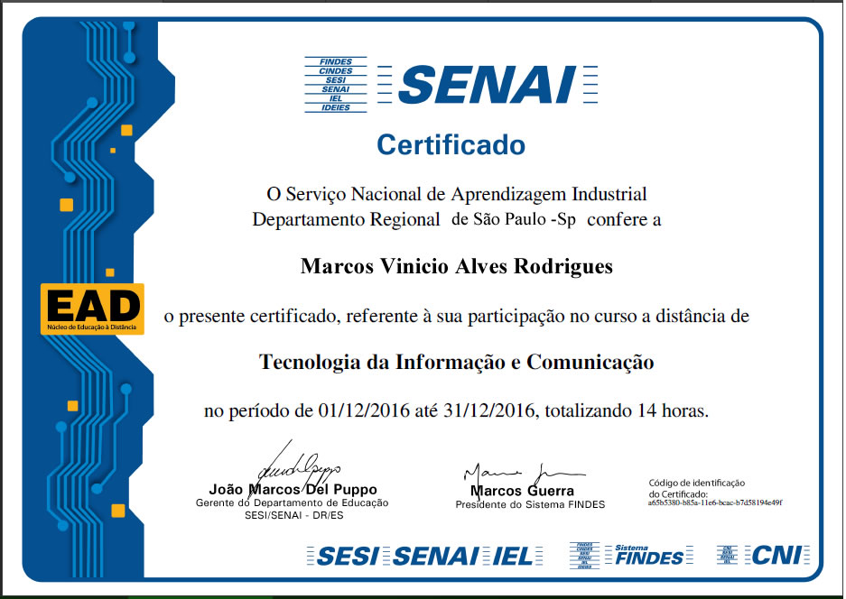 Certificado Tecnologia da Informação e Comunicação
